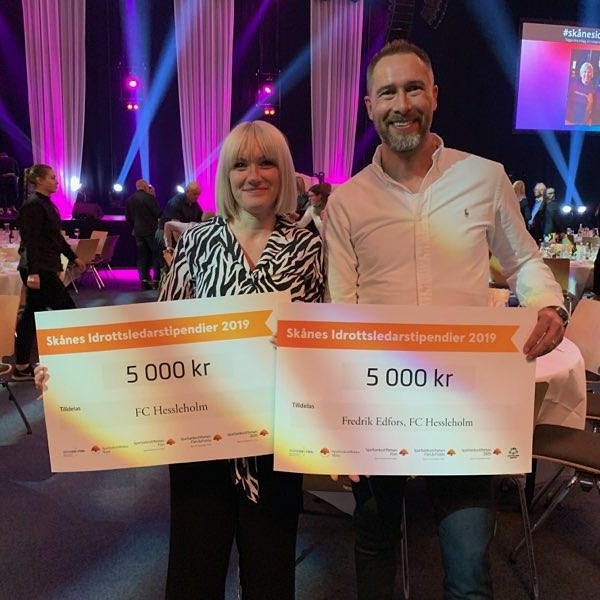 Vi gratulerar Fredrik Edfors till utmärkelsen som en av årets idrottsledare. Ikväll har vi varit på gala på Sparbanksarenan i Lund. God mat, fin underhållning och trevligt sällskap. Grattis Fredrik och FC Hessleholm